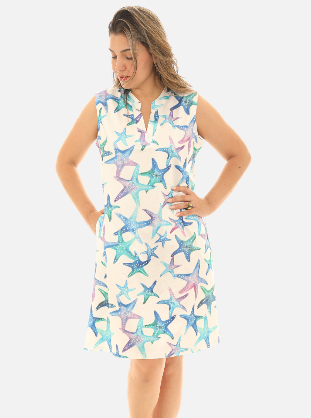 Women’s UPF 50+ Sun Protection Dress – Sleeveless Beach & Casual with Starfish Print