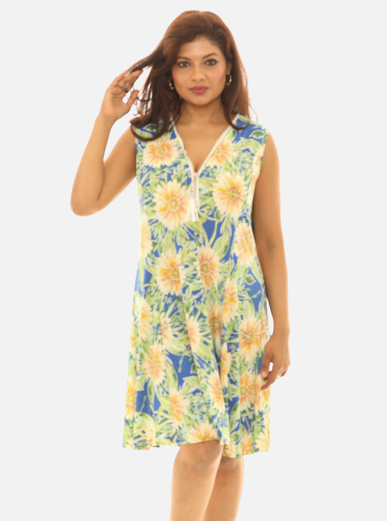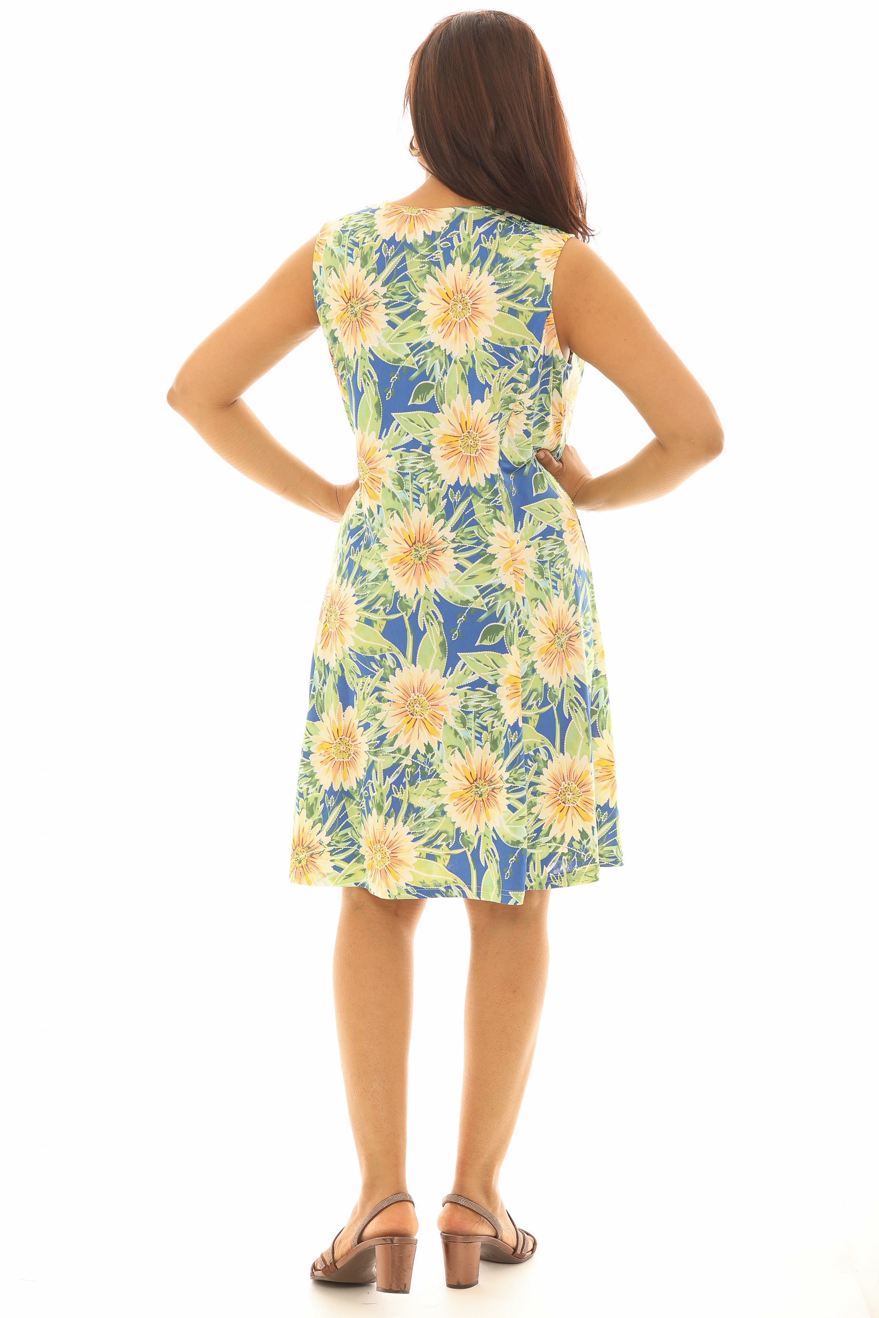 Brighten your everyday wardrobe with this sunflower puff print dress, designed for comfort and effortless style. Crafted from a premium stretch fabric, it offers a flattering fit and easy movement throughout the day.